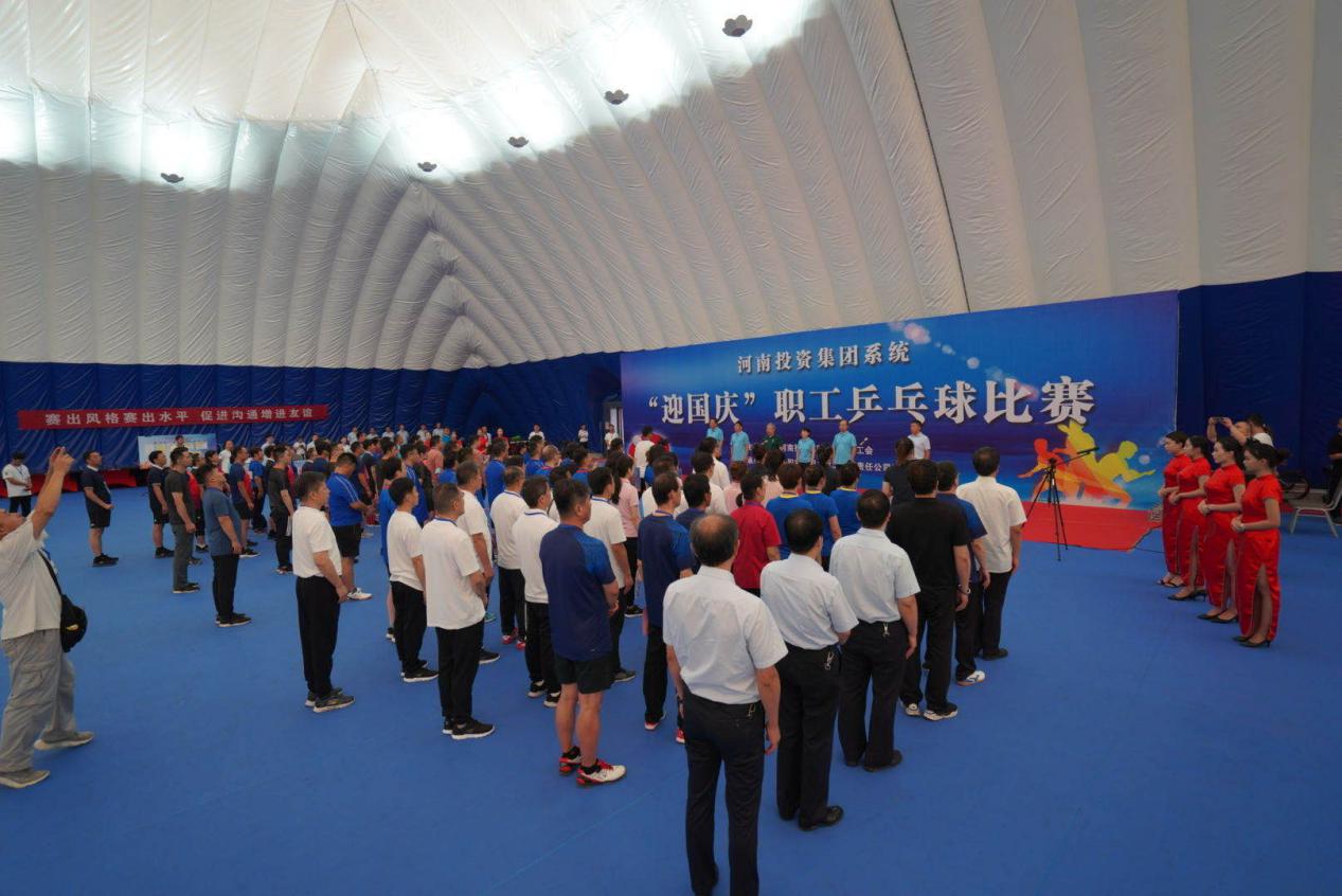 9月10日,河南投資集團(tuán)“迎國慶”職工乒乓球比賽在洛陽市宜陽縣鳳凰嶺拉開帷幕。開幕式上全體肅立,奏唱國歌,裁判員代表、運(yùn)動員代表依次進(jìn)行了宣誓,河南投資集團(tuán)有限公司黨委委員、紀(jì)委書記張宏麗致辭并宣布比賽開幕。